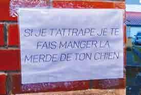 Ça peut rendre nerveux, voire très nerveux. En vrai, c’est juste insupportable. Sortir de chez soi et poser un pied dans une… – ça c’est le scénario extrême –, voire simplement l’éviter, cette énorme merde de chien – à se demander s’il ne s’agit pas d’un poney – hein, c’est chiant. Donc, si l’on s’accorde sur le fait que les animaux errants sont assez rares en ville, c’est bien du côté du maître, de la maîtresse, qu’il faut regarder. Comme disait ce poète français dont les initiales sont SG, qui promène son chien est au bout de la laisse. Et comme il reste une main de libre, si le fameux chien n’est toujours pas cheval, autant qu’elle serve à porter un petit sac… En ce début 2025, il est encore temps de prendre quelques résolutions importantes, dont celle-ci : C’EST-PROMIS-JE-RAMASSE-LA-MATIÈRE-FÉCALE-DE-MON-ANIMAL (on dit bien joué la rime, merci) et sinon, JE-CONDUIS-MON-ANIMAL-VERS-UN-DE-CESMICRO-PARCS-URBAINS-OÙ-IL-EST-DE-BON-TON-DE-DÉFÉQUER-SURTOUT-SI-LONEST-UN-CHIEN. Quelques habitants, plus ou moins tendus par la situation, tentent des choses, notamment quelques panneaux dont on ne sait s’ils sont dissuasifs… Sinon, autre rappel, mais je ne sais combien de maîtres et maîtresses ont été verbalisé(e)s, normalement c’est 68 euros d’amende !!!