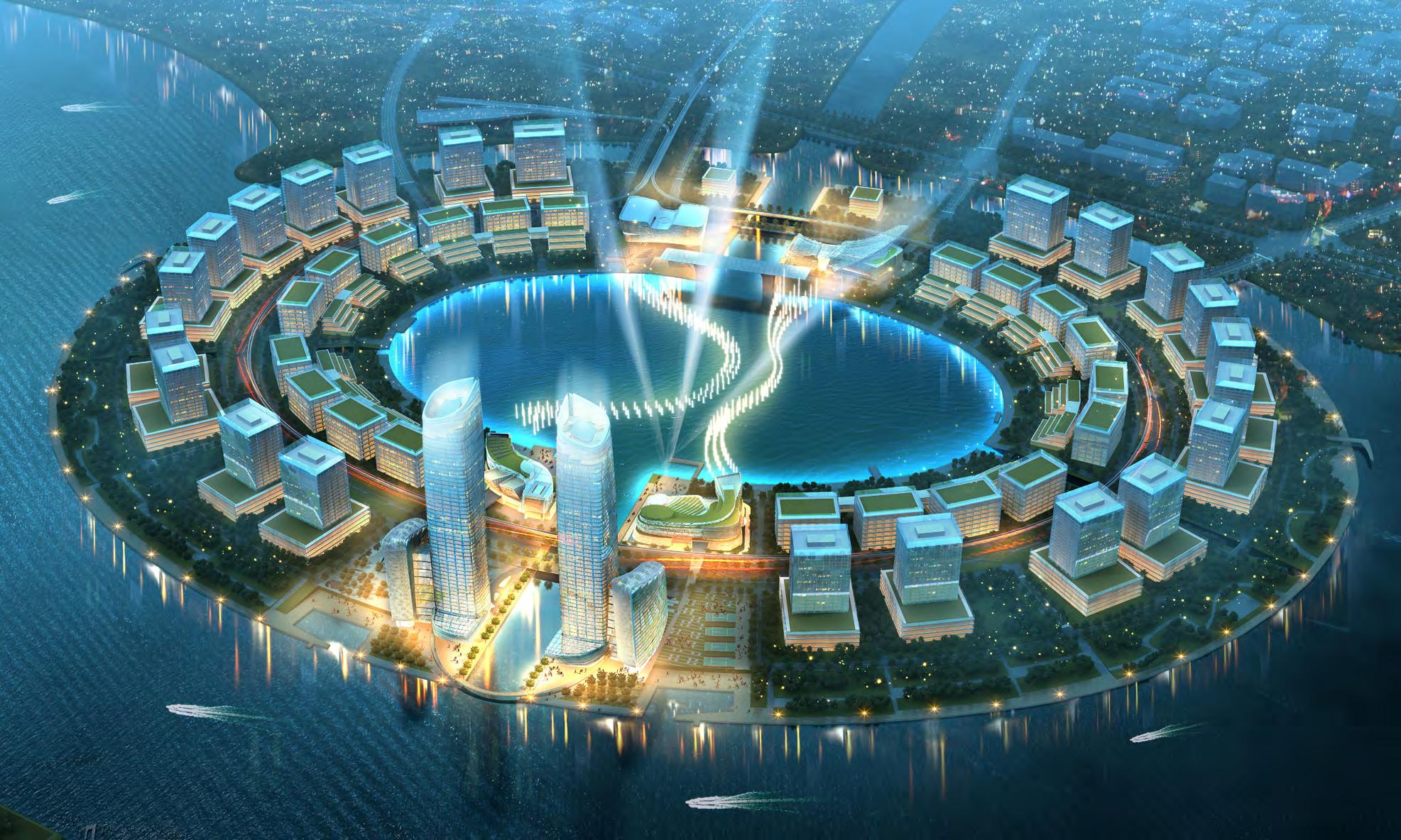 respects the overall urplot and building they rely on each space, both unharmonious architecIsland design conarchitectural style adding a unique overall relatively plain the northern echoing with pagoda shape the Millennium Yang pagodas architect/master planner’s Longhu means the Lake of Dragons. Through the “twin dragons playing in the water” theme, It not only highlights the original dragon theme, but also immediately connects the six buildings into one organic form, turning the inner lake from a separator to a connector. The extensive dancing water curtains will become a major focused view of the inner lake. It is an in-depth interpretation of the overall design concept of “Inner Lake as the stage while buildings the stand” by the chief architect of Financial Island.
