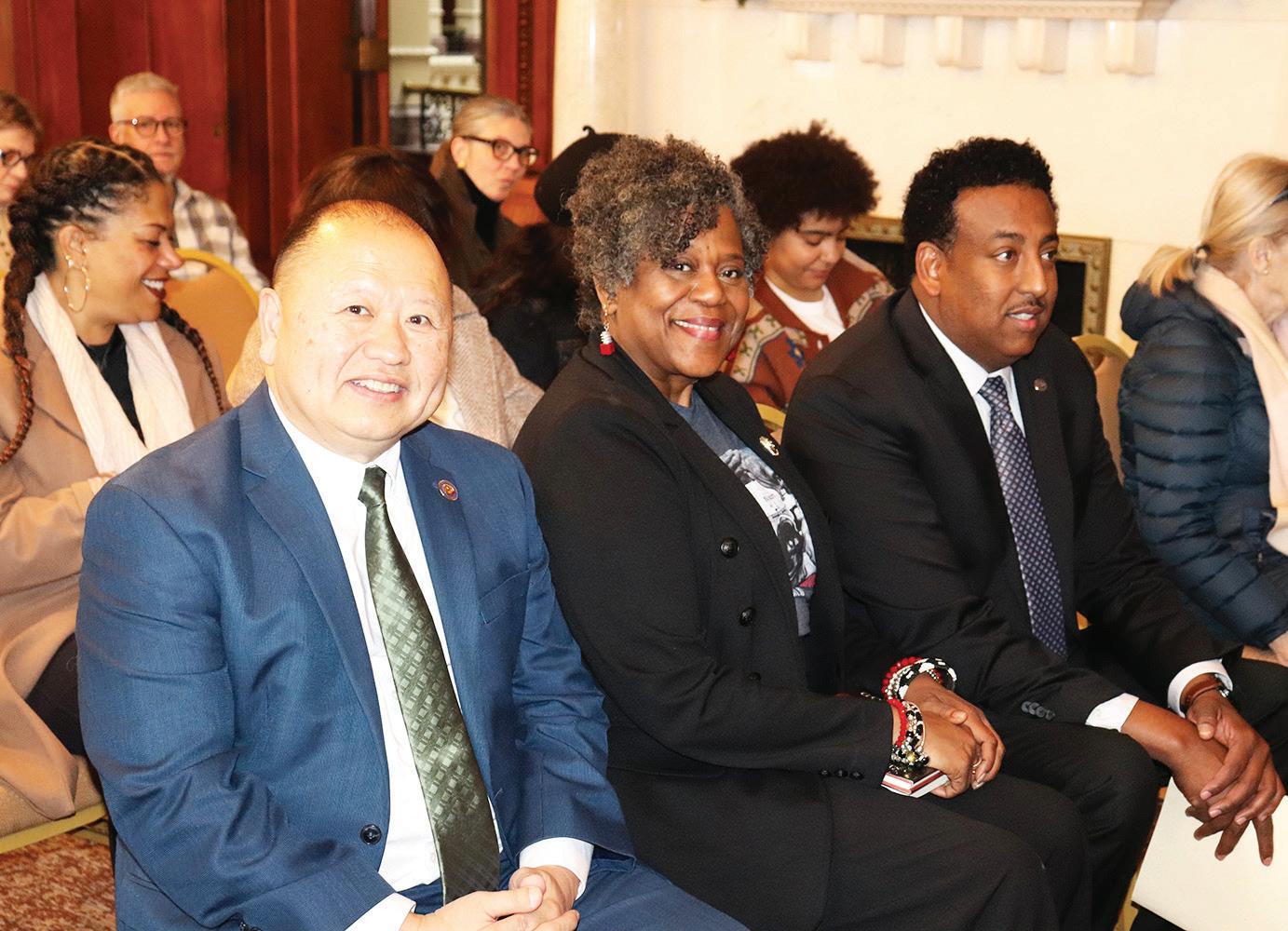 State Sen. Foung Hawj, Ms. Robin Hickman-Winfield, grandniece of Gordon Parks and State Rep. Samakab Hussein at the press conference where they made the announcement on Sunday, Nov. 30, 2025. Mshale Staff Photo by Tom Gitaa