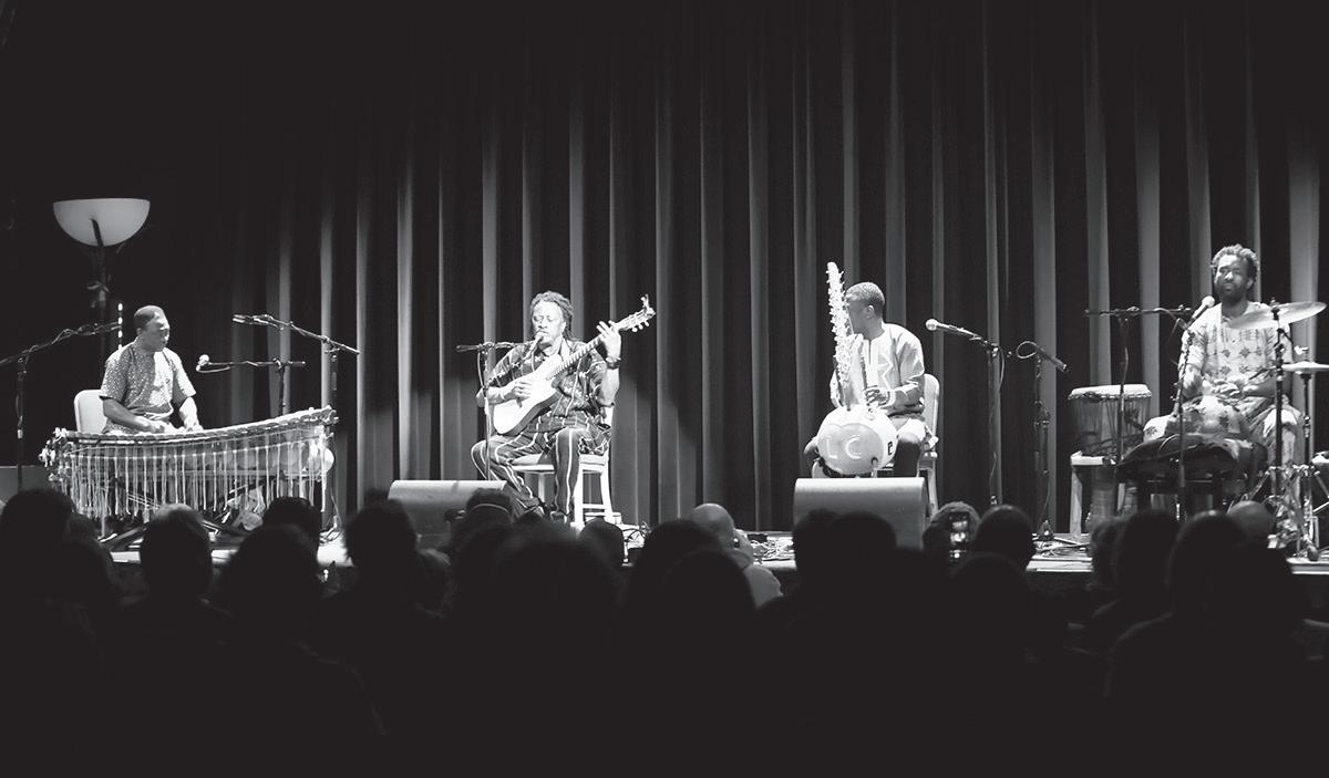 Habib Koité on guitar, Aly Keita on balafon, and Lamine Cissokho on kora, and Mama Kone on calabash and djembe as they performed at the Cedar on Nov. 13, 2024.