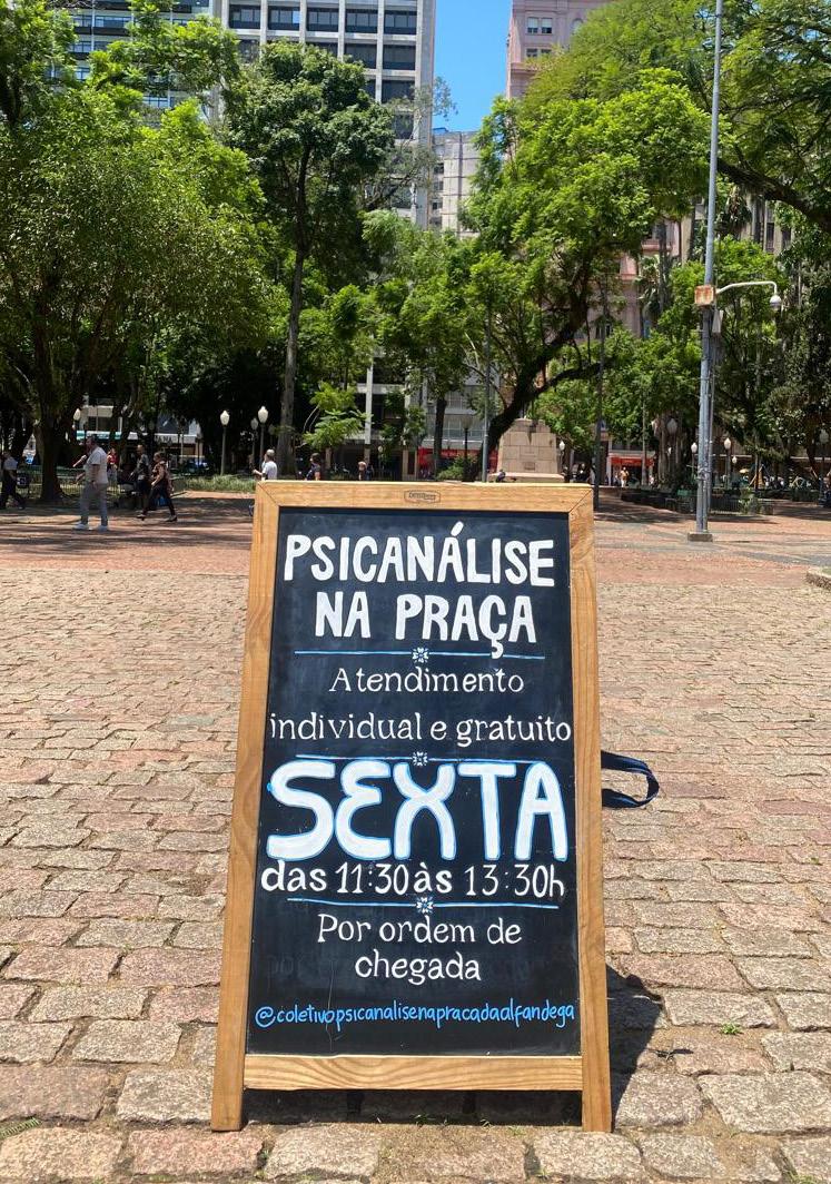Nas sextas-feiras, entre 11h30 e 13h30, as análises que se dão na Praça da Alfândega não têm um marcador excludente – já que “o inconsciente não tem idade”, não é mesmo? E sendo ele atemporal, o coletivo se propõe a escutar sujeitos de todas as idades. Abre-se espaço para um outro tempo e um outro ritmo. Não se trata de respostas prontas ou soluções imediatistas. Não se preenche lacunas, nem se oferece certezas. Se sustenta a falta, abrindo espaço para que o sujeito possa escutar a si mesmo. Reconhecer o que se repete e, pouco a pouco, construir outras possibilidades.