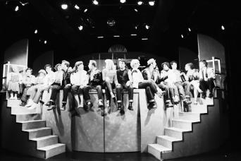 Large group on the Sconset beach, most in bathing suits.