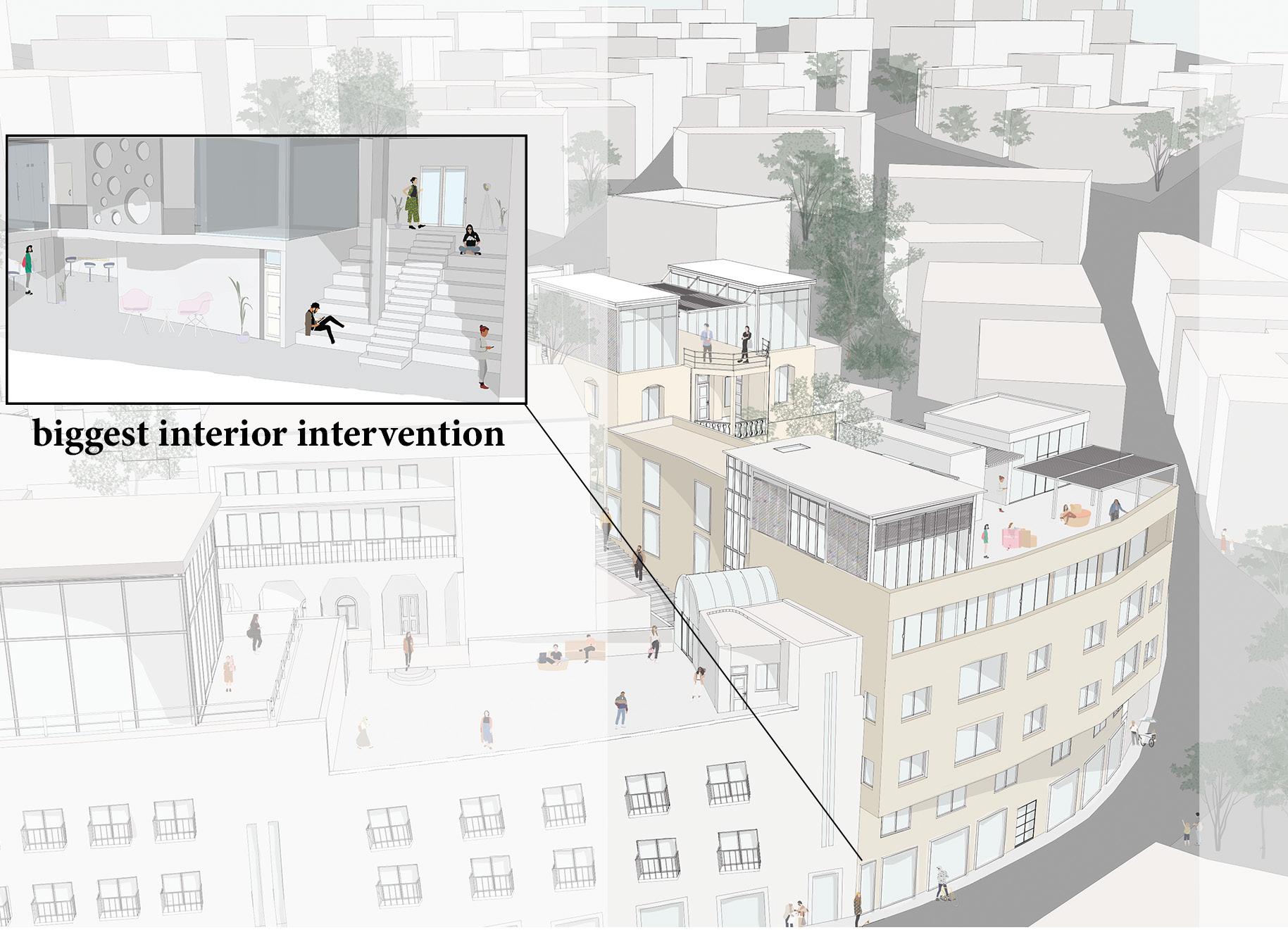 The project is located in Downtown Amman and includes three structures: the Strand Hotel (1960s), a 1920s villa, and a 1960s annex. Through a comprehensive analysis of the buildings’ attributes, values, authenticity, and integrity, I developed design decisions that respect the original fabric while introducing thoughtful additions. Key attributes include the mix of residential and commercial use, Art Deco features on the Strand façade, Art Nouveau-inspired interior textiles, the villa’s 3-bay typology, and the seamless integration with the sloped site. Structurally, I preserved the original post-and-beam and retaining wall systems, applying strengthening technologies with minimal façade intervention. Most changes were internal, particularly on the first two floors of the Strand, all grounded in theoretical research and contextual understanding.