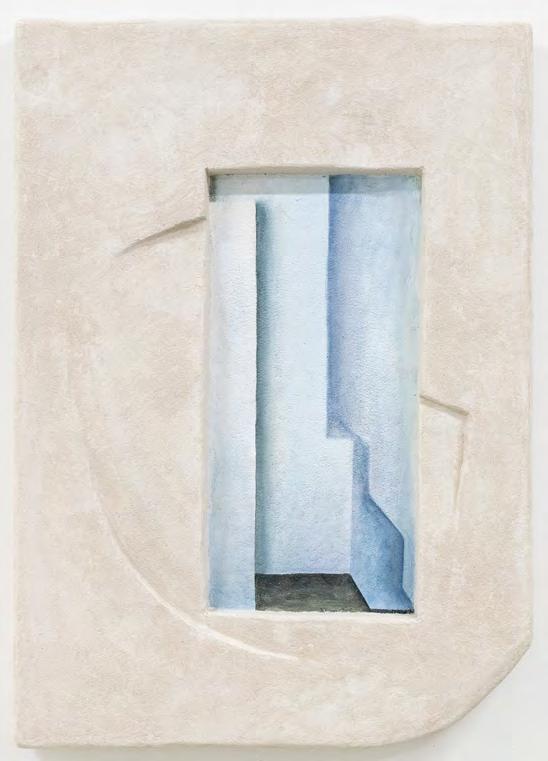 acrylic, paper pulp, hessian, composite render, extruded polystyrene, wood 55 x 83 x 6 cm