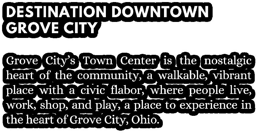 GROVE CITY HISTORY ▸ Be sure to explore the Grove City Welcome Center & Museum (3378 Park St., The Grant-Sawyer Home (4126 Haughn Rd), Century Village (4185 Orders Rd.) Check for hours and details at www.visitgrovecityoh.com