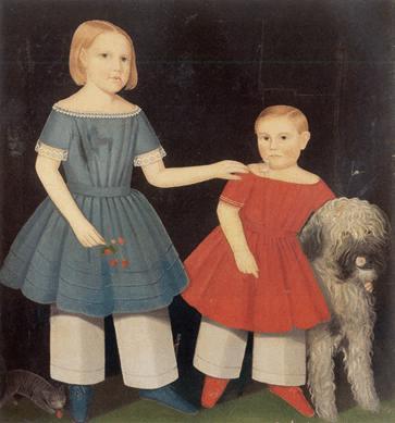 The two portraits with red drapery, depicting somewhat older children, may date from a slightly later period, and bear some similarities to the portraits of the “Litchfield Children” [q.v.].