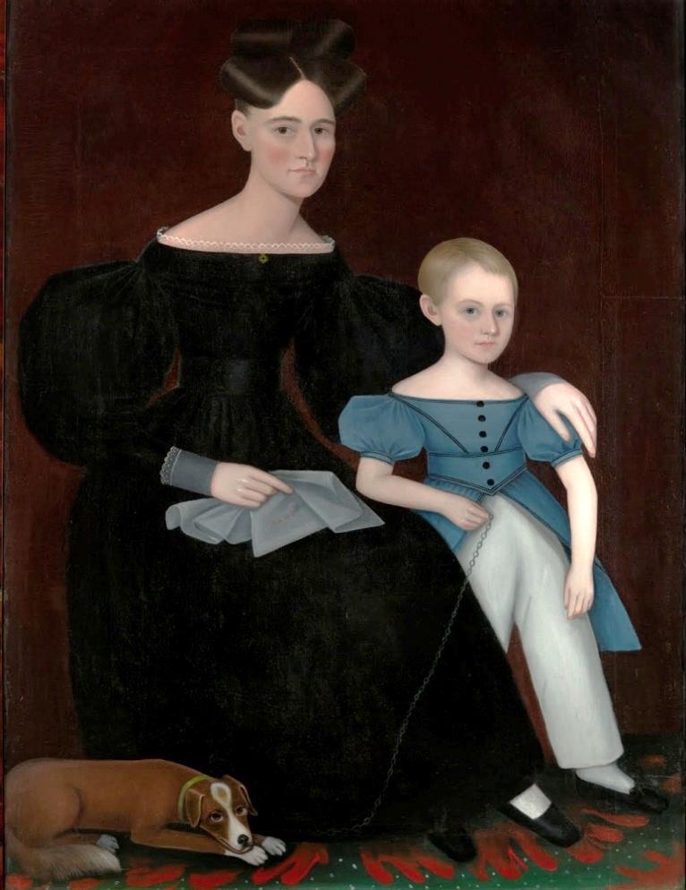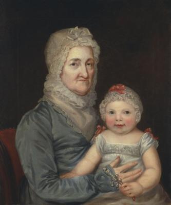 It has been suggested, based on provenance, that the iconic portrait of the girl holding a white cat (page center) may belong to the Raymond family, and hence the related Foster family, including Augusta Maria Foster. By stroke of luck, and close scrutiny, the portraits of Frances Sprague Foster and Judge Ebenezer Foster are datable to 1839. On this basis, and a satisfying resemblance between the child and the rosy-cheeked couple, I have formed a hypothesis that the child is Ann Amelia Foster (1833-1883). This remains speculative, however.