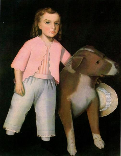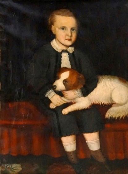 Children are not typically overburdened with toys, whips, baskets or a multitude of pets, but are usually depicted with simplicity and some small item. The message, if any, may be subtle. There can be little doubt that the sedentary dog, which appears in so many of his portraits of children, was Phillips’s own. As a traveling companion, a means of connecting with children, and of keeping them preoccupied during tedious portrait sessions, Phillips could have found no better device.