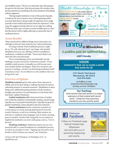Centered in God, we co-create a world that works for all. 1717 North 73rd Street Wauwatosa, WI 53213 414-475-0105 ucim@wi.rr.com unitychurchinmilwaukee.org Sunday service 10:00am