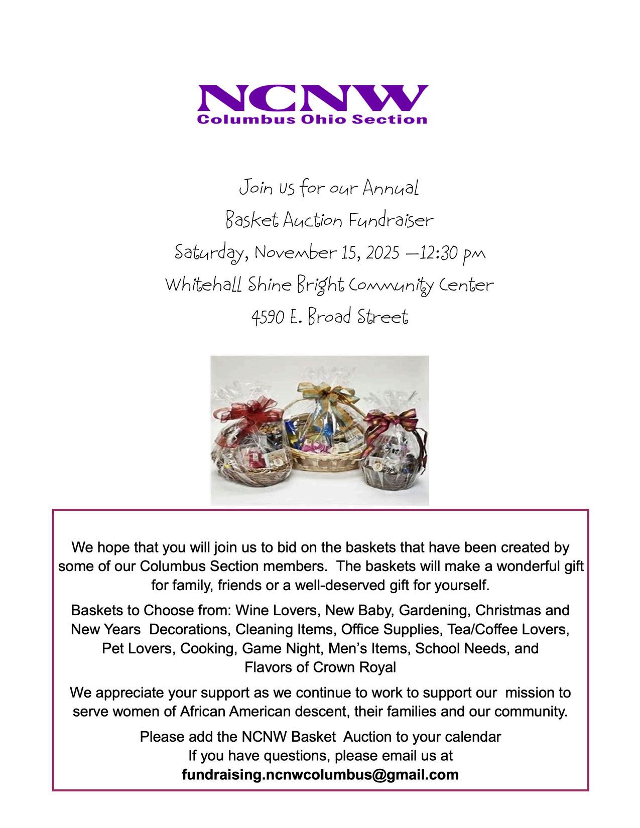 amextremelypleasetowelcomeeachonetotheColumbus OhioSection,oftheNationalCouncilofNegroWomen's42 AnnualFundraiserJazzBrunch.Iamgrateful,andchallenged bytheamazingservice,talents,giftsthatourmembersofthe ColumbusOhioSectionoftheNationalCouncilofNegro WomenIncorporated,surelyhasprovidedeachandevery year. nd