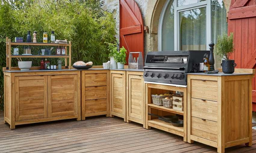 Moduli vanjske kuhinje 'Zoe' reciklirana tikovina, keramička radna ploča otporna na ogrebotine, nogice podesive po visini
