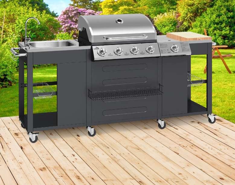 Moduli vanjske kuhinje 'Quad' visoka kvaliteta izrade, radna ploča od nehrđajućeg čelika, noge podesive po visini