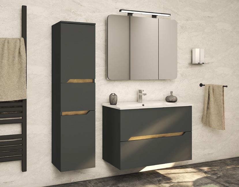 Kupaonica Capri, MDF, boja: grafit siva, element s umivaonikom, keramički umivaonik, dim.: 85x63x45 cm, element s ogledalom i LED rasvjetom en.