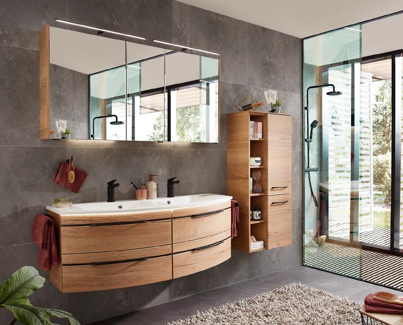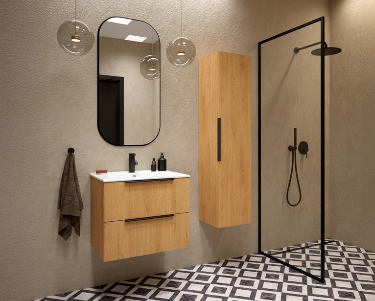Kupaonica Natur, dekor hrasta, element s umivaonikom, keramički umivaonik, 2 ladice, dim.: 62x51,5x46 cm, visoki element, dim.: 33x140x33 cm. (08380045/01-02)