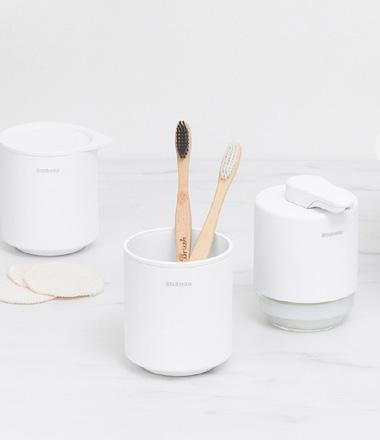 19: Serija kupaonskog pribora Mindset, metal s mineralnim premazom, boja: bijela, otporno na koroziju. Posuda za sapun, 8x12x2,5 cm 22,99 17,99 €. Dozator tekućeg sapuna, Ø 8x11 cm, 200 ml. Kupaonska čaša, Ø 8x9,4 cm. (33940856/01-03,05-07,09,10,12-16)
