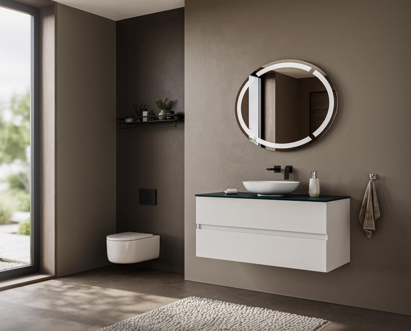 Kupaonski blok Toscana , boja: bijela, element s keramičkim umivaonikom dim.: 80x51x46 cm, ogledalo s LED rasvjetom en. učinkovitosti A-A++ dim.: 80x70 cm. Meko zatvaranje uključeno u cijenu. (11630013/05)