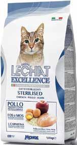 Hrana za sterilisane mačke je specijalno formulisana kako bi zadovoljila specifične nutritivne potrebe mačaka nakon sterilizacije ili kastracije. Nakon ovog zahvata, mačke često imaju smanjen metabolizam i tendenciju ka povećanju telesne težine, zbog čega je važno prilagoditi njihovu ishranu.Ova vrsta hrane obično sadrži manje kalorija, a istovremeno je bogata proteinima kako bi se očuvala mišićna masa. Takođe, sniženi nivo masti pomaže u kontroli težine, dok uravnoteženi sadržaj vlakana daje osećaj sitosti, smanjujući rizik od prejedanja. Neke formule uključuju dodatke koji pomažu u održavanju zdravlja urinarnog trakta, jer sterilizovane mačke mogu biti podložnije problemima s mokraćnim sistemom.