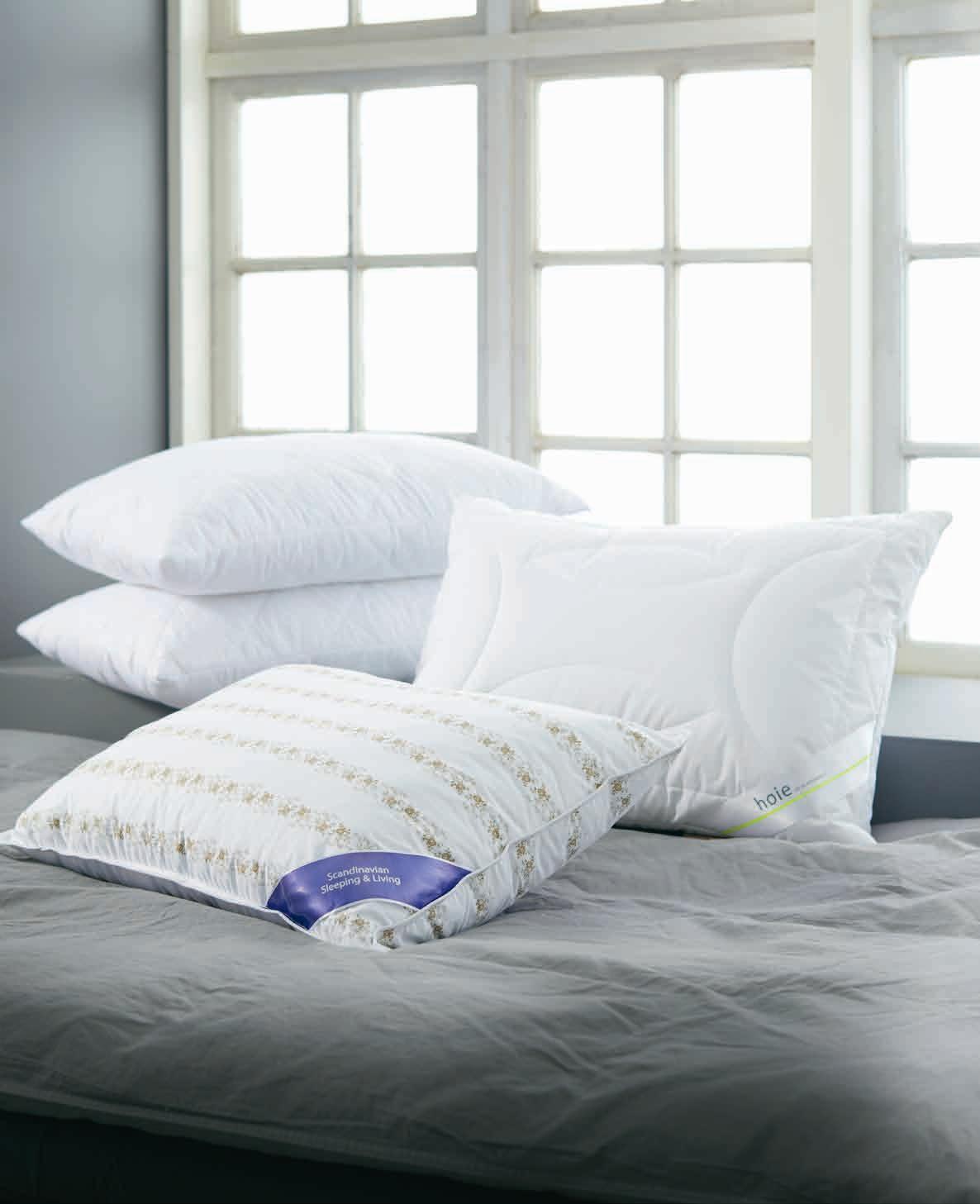 Sa 3 komore ispunjene guščjim paperjem i perjem (720 g). Navlaka od 100% pamučnog batista tretirana protiv grinja. 50x70 cm 13999,70x80 cm 16999,- 8500,-