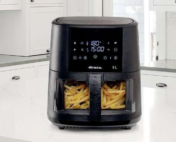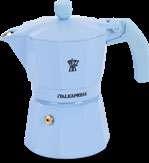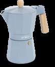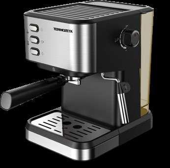 Izrađen od stakla i čelika s prozirnom graduiranom posudom.