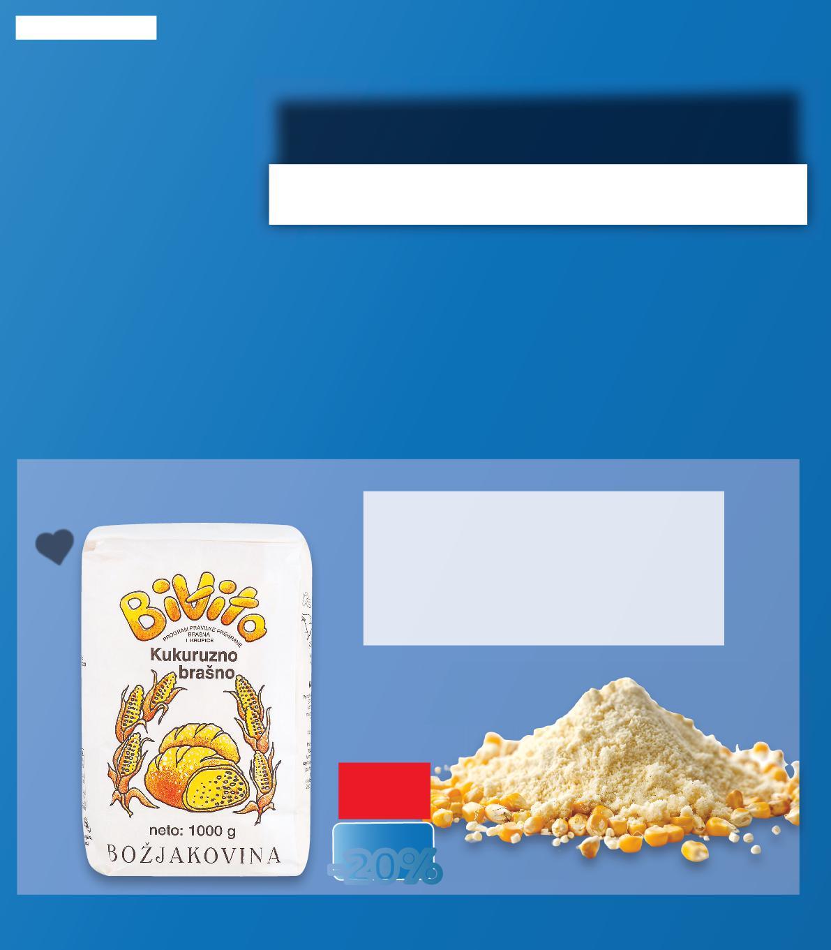 Sitno mljeveno zrno kukuruza. Prije meljave se kukuruzu uklanja klica koja je nositelj najvećeg postotka masti kukuruza. Idealan je sastojak dijetalne prehrane. Kukuruzno brašno proizvedeno je od kukuruza najviše kvalitete i najvrjednijih nutritivnih osobina.