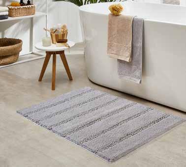 Kupaonski tepih Begum i Tamelna, kombinacija pamuka i poliesterskih vlakana, protuklizno, perivo do 30°C, 60x100 cm 34,99 24,99 €; 70x120 cm 49,99 34,99 €; 80x150 cm. 69,99 49,99 € (61340031;0030/01-04)