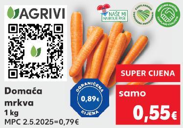 *Sve navedene cijene izražene su u eurima s PDV-om. Ne odgovaramo za tiskarske pogreške. Fotografije proizvoda ne moraju 100% odgovarati dotičnim proizvodima. Proizvode iz aktualne ponude možete kupiti samo u količinama predviđenim za kućanstvo. **Pojedini proizvodi označeni kao kratkotrajna ponuda dostupni su količinski i vremenski strogo ograničeno, te je za istima u pravilu potražnja povećana. Stoga upućujemo naše cijenjene kupce da je sve detalje oko istih moguće dobiti na našem info-pultu izravno, ili pak unaprijed putem Upravljanja odnosa s kupcima, na broj 0800/223 223 ili putem e.maila kontakt@kaufland.hr MPC=maloprodajna cijena u smislu čl. 4. st. 1. t. 11. Zakona o zaštiti potrošača (NN 19/22, 59/23) 0800 / 223 223 (besplatni telefon Upravljanja odnosa s kupcima) Radno vrijeme Upravljanja odnosa s kupcima: pon - pet, od 8:00 do 20:00 / sub od 8:00 do 17:00