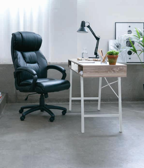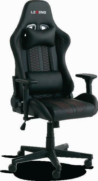 Veštačka koža. Jastuci za dodatnu podršku za lumbalni deo leđa i vrat. Sa podesivim naslonima za ruke, kliznim nagibnim mehanizmom i podesivom visinom. Š70xV126-136xDub70 cm 29999,-