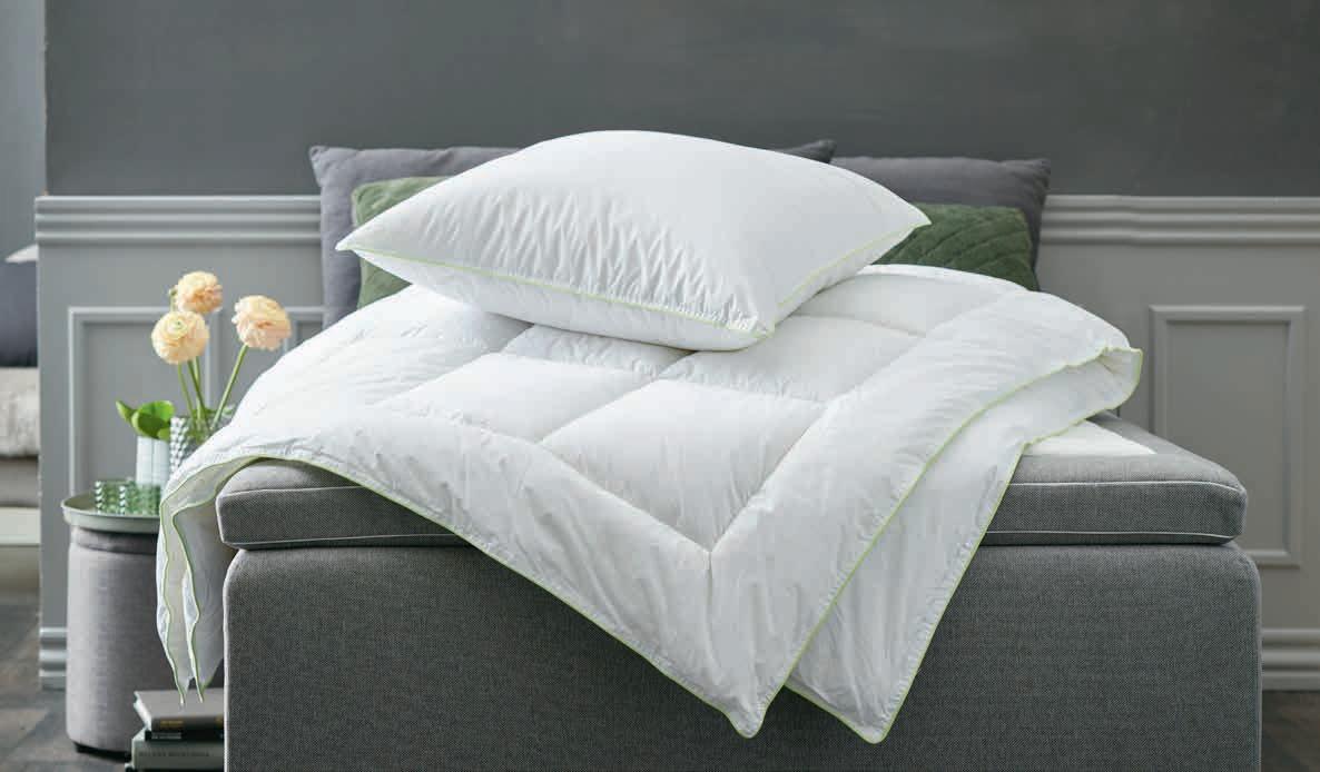Sa jedinstvenim punjenjem od silikoniziranog poliesterskog paperja (1100 g). Meka navlaka od 100% pamučnog batista. Periv na 60°C. Sa torbom. 135x200 cm 10999,-