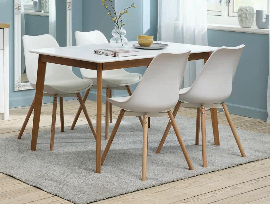 JEGIND STO + KASTRUP STOLICE Sto: masivno drvo i medijapan. Š80xD130xV75 cm. Stolice: oblikovano sedište i masivna hrastovina. Sa fiksiranim jastukom od veštačke kože. Sto* 19999,- 13500,- Stolica 9999,- 4000,-