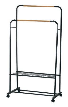 Stalak za odjeću crni, s kotačićima, dvostruki