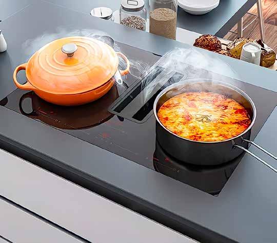 Kombinacija indukcijske ploče za kuhanje i nape Siccabo Integrale Evo, boja: crna/inox, ploča za kuhanje s dva područja, dodatna booster funkcija, integrirana napa, protok zraka 648m3/h, s filterom za masnoću, 4 brzine, dim.: 78x52 cm, en. razred A+. (01540087/02)