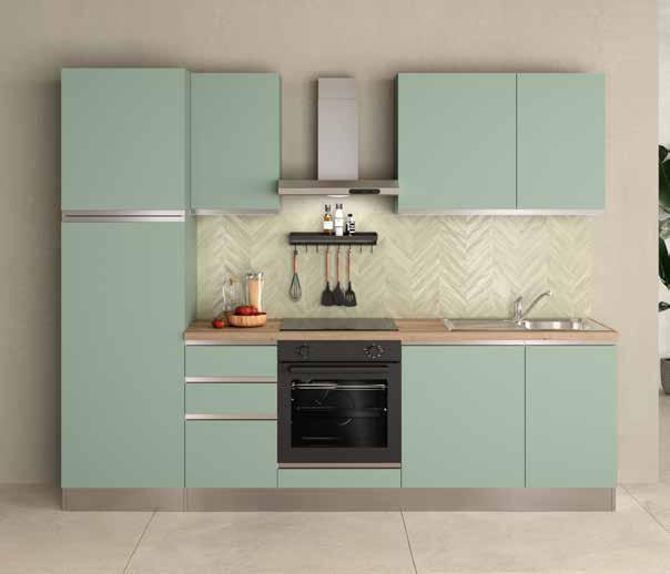 1: Kuhinjski blok s aparatima Selena , lijevi ili desni, boja kadulje, dim.: 270x216x60 cm. U cijeni kuhinje uključeni su Beko aparati: staklokeramička ploča za kuhanje HIC 64401, pećnica BBIC11000B/A, hladnjak s ledenicom BDSA250K3SN/F, perilica posuđa DIN35320/F, napa TILLY CAM IX/A/60/C, sudoper i slavina. (11630061/01-02)