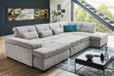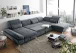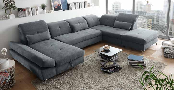 1: Sjedeća garnitura Melfi, lijeva ili desna, boja: antracit siva, dim.: 168x350x245 cm, 3 leđna jastuka, podesivi naslon za ruke, 6 podesivih naslona za glavu, ležaj dim.: 120x300 cm i sanduk za posteljinu uključeni u cijenu. (22200286/01-02)