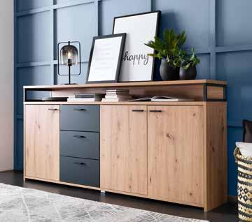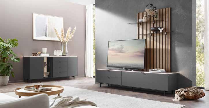 4: Program Riani, dostupan u bojama: antracit siva ili bijela. Regal za dnevni boravak Riani, MDF/furnir, dim.: 216x198,3x46 cm, LED rasvjeta en. učinkovitosti A-A++ uključena u cijenu. Komoda Riani, dim.: 186,2x98,1x46 cm, LED rasvjeta en. učinkovitosti A-A++ uključena u cijenu. Uz nadoplatu dostupna vitrina. (01820009/01,06,16,11)