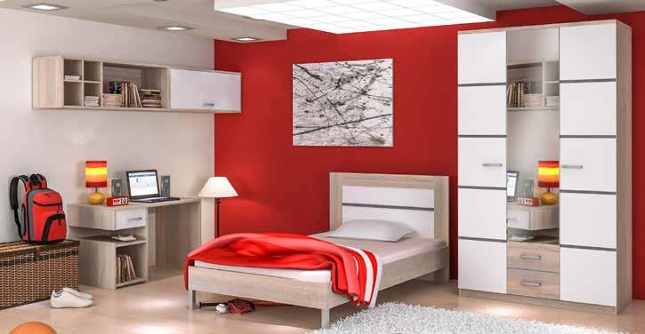 4: Soba za mlade Luna 1 , HDF, boja: hrast/bijela, ormar dim.: 123,4x218x56 cm, krevet: 120x200 cm, pisaći stol: 110x71x60 cm, viseći regal: 125x35x38 cm. Podnica i madrac dostupni uz nadoplatu. (05860042/06)