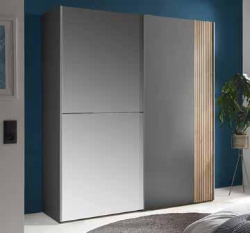5: Ormar s kliznim vratima Berno, boja: grafit siva/dekor hrasta, ogledalo, dim.: 170x196x57 cm. (25220422/02)