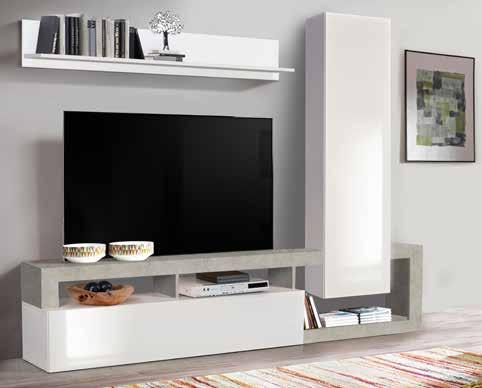 6: Regal za dnevni boravak Dallas, dekor betona/bijela/bijela visoki sjaj, dim.: 219x173x35 cm. (21400164/10)