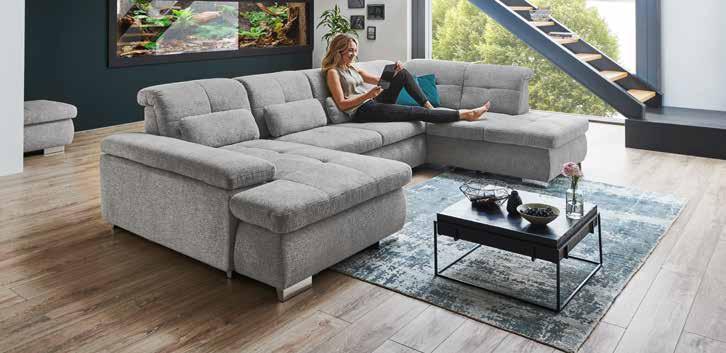 3: Sjedeća garnitura Allegra , boja: siva, dim.: 179x333x220 cm. Cijena se odnosi na garnituru sa glavne slike bez naslona za glavu i jastučića. XXXL mogućnosti kombiniranja velikim brojem elemenata uz nadoplatu kao što su: ležaj, damski ležaj podesiv pomoću elektromotora, podesiva dubina sjedišta, daljinski upravljač, tabure, jastuci i nasloni za glavu te mogućnost odabira tipa sjedišta uz široku paletu boja i materijala. (02450316/01)