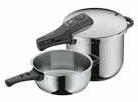 12: Ekspres lonac Secure Trendy Aqua, nehrđajući čelik, 2 programa kuhanja - za povrće i za meso, 5 sigurnosnih ventila, s umetkom za kuhanje na pari, pogodno i za indukciju, perivo u perilici posuđa (osim poklopca), 8 l 119,99 89,99 € Set ekspres lonaca 2/1, Cromargan® nehrđajući čelik 18/10, transtermalno dno, ručka odvojiva jednim klikom, jednostavno čišćenje, mjerna skala, dvije razine kuhanja, 6,5 l + 3 l. (67810721/01-02;37312653)