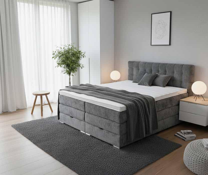 Boxspring krevet Cres, boja: siva, postolje s bonell opružnom jezgrom, 5-zonski madrac s džepićastom opružnom jezgrom visine 20 cm, nadmadrac visine 5 cm, dim.: 180x200 cm, vanjske dim.: 185x120x215 cm, visina ležaja 72 cm, sanduk za posteljinu uključen u cijenu (19330061/01)