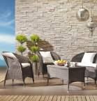 sastoji se od trosjeda d 148 x š 75 x v 73 cm, dva naslonjača d 73 x š 75 x v 73 cm i stola d 110 x š 60 x v 42 cm, aluminijska konstrukcija / drvo akacije, natur / bež, uklj. jastuci za sjedišta i naslone 449,- € 32140662