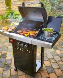 Plinski roštilj 'Porta - Chef 320' ukupna snaga 5,25 kW, 3 plamenika od nehrđajućeg čelika, el. paljenje 'Sure Lite', rešetka za pečenje d 55 x š 33 cm, gornja rešetka za održavanje topline hrane d 47 x š 18 cm, 'Flav - R - Wave' sustav za isparavanje, poklopac s ugrađenim termometrom, sklopive bočne police, d 100,3 x š 67,3 x v 110,5 cm, uklj. cijev s regulatorom plina 399,- € 25044746