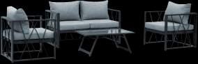 sastoji se od dva dvosjeda d 168 x š 86 x v 66 cm i stolića d 72 x š 41,5 x v 26 cm, praškasto lakirana aluminijska konstrukcija, sivo - bež, uklj. olefinski jastuci za sjedišta i naslone 559,- € 32040744