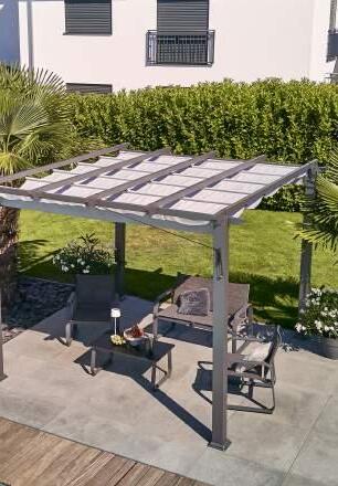 š 240 x d 250 cm, praškasto lakirana aluminijska konstrukcija, tkanina od impregniranog poliestera 220 g / m², upravljanje ručicom, siva (vijci za montažu su dostupni zasebno) 30145847
