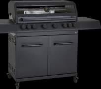 21 kW, 6 plamenika, 1 bočni (3 kW) i 1 stražnji plamenik, multifunkcionalna rešetka za pečenje d 90,5 x š 45 x cm, rešetka za održavanje topline hrane d 91 x š 19 cm, piezo paljenje, termometar, 2 bočne police, prostor za pohranu plinske boce do 11 kg, kotačići s kočnicama, konstrukcija od nehrđajučeg čelika / emajlirana unutrašnjost roštilja, crni, d 161 x š 60,5 x v 118 cm 899,- € 31446400