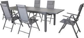sastoji se od produljivog stola d 200 - 280 x š 90 x v 72 cm i 6 stolica d 55 x š 72 x v 107 cm, ploča stola od crnog kaljenog stakla, mogućnost kupnje dodatnih stolica, tekstil / kaljeno staklo / praškasto lakiran aluminij, tamno siva / antracit, uklj. udobni jastučići za glavu 719,- € 30293597