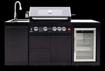 Vanjska kuhinja 'Too much BBQ3' plinski roštilj s glavnim plamenicima ukupne snage 14,8 kW, bočni plamenik 4,5 kW, poklopac s termometrom i prozorčićem, regulatori s LED osvjetljenjem, prostor za pohranu pribora i plinske boce, ražanj na električni pogon, ugrađeni otvarač za boce, ormarić sa sudoperom i slavinom d 45 x š 58 x v 90,7 cm, ormarić s hladnjakom (50 l) d 53 x š 58 x v 90,7 cm, robusna konstrukcija od visokokvalitetnog nehrđajućeg čelika, otporno na vremenske utjecaje, crna, d 177,9 x š 57 x v 137 cm 32522668