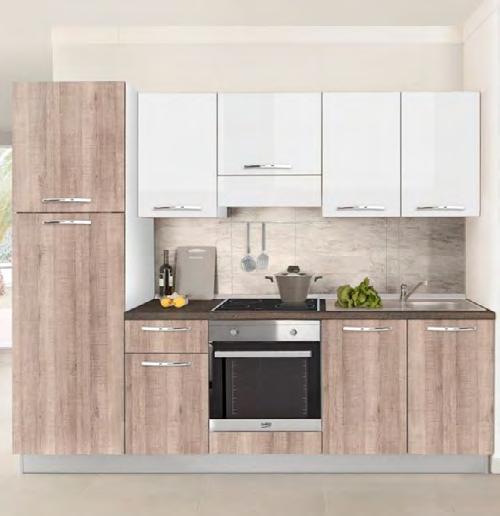 Kuhinjski blok Noah, boja: bela/ artisan hrast, širina 260 cm, visina 220 cm. Cena je za drveni deo, električni aparati i oprema uz doplatu. Sastav: viseći kuhinjski element sa nagibnim vratima x2; donji kuhinjski element x 2, kuhinjski element za sudoperu, kuhinjski element za ugradni fržider, radna ploča visine 38 mm; ručke uključene u cenu (12790139/01)