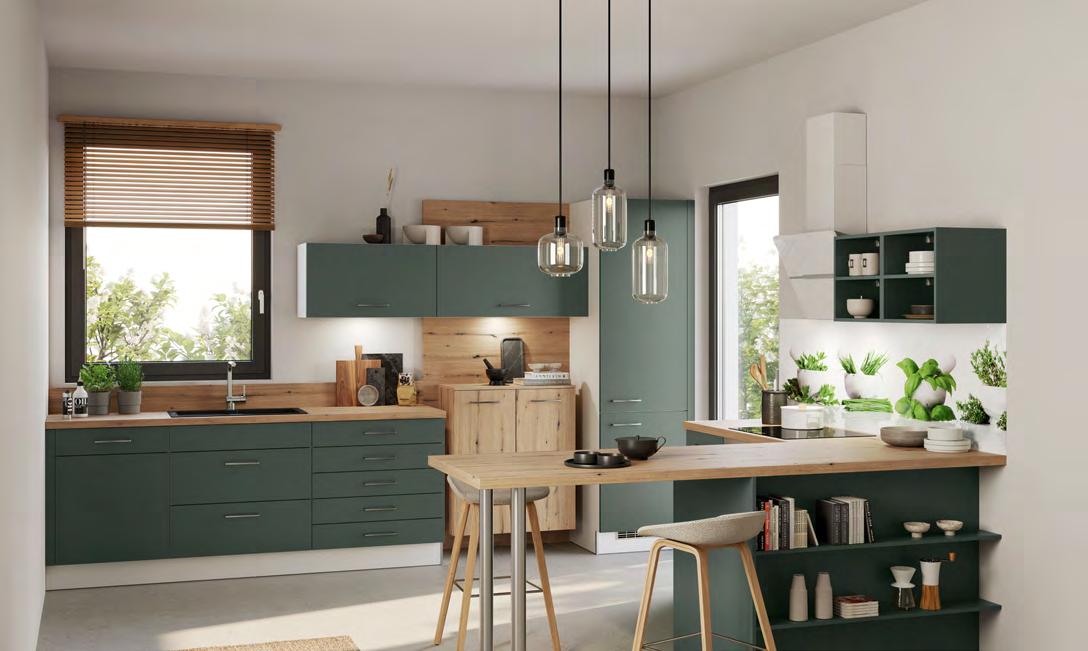 Kuhinjski blok s aparatima Stella 300 TOP, 300x240x60 cm, boja: bela/zelena/antracit. U cenu su uključeni električni aparati BEKO: ploča za kvanje HIC64401, rerna BBIC11000B, frižider BDSA250K4SN, aspirator ERA 52, sudomašina DIN25320 (04020006/03)