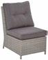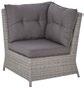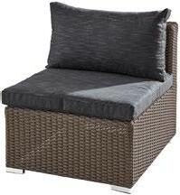 Baštenska garnitura Tahiti, aluminijum/ plastično pletivo/poliester, boja: siva, nosivost do 120 kg. Fotelja za sedenje, 77x82x75 cm. Ugaoni deo za sedenje, 75x83x75 cm. Završni deo za sedenje, desni, 65x82x75 cm. Zavšni deo za sedenje, levi, 65x82x75 cm. Srednji deo za sedenje, 55x82x75 cm. Sto, sa staklom, maks. opterećenje do 60 kg, 150x80x67 cm (08730016/01-05,07, 08730010/01)